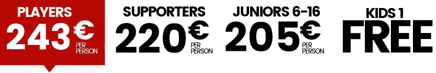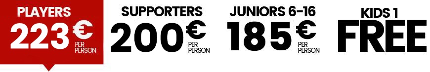 - 2 Noches hotel con desayuno Viernes & Sábado noche : habitaciones triples para jugadores, dobles para parejas
